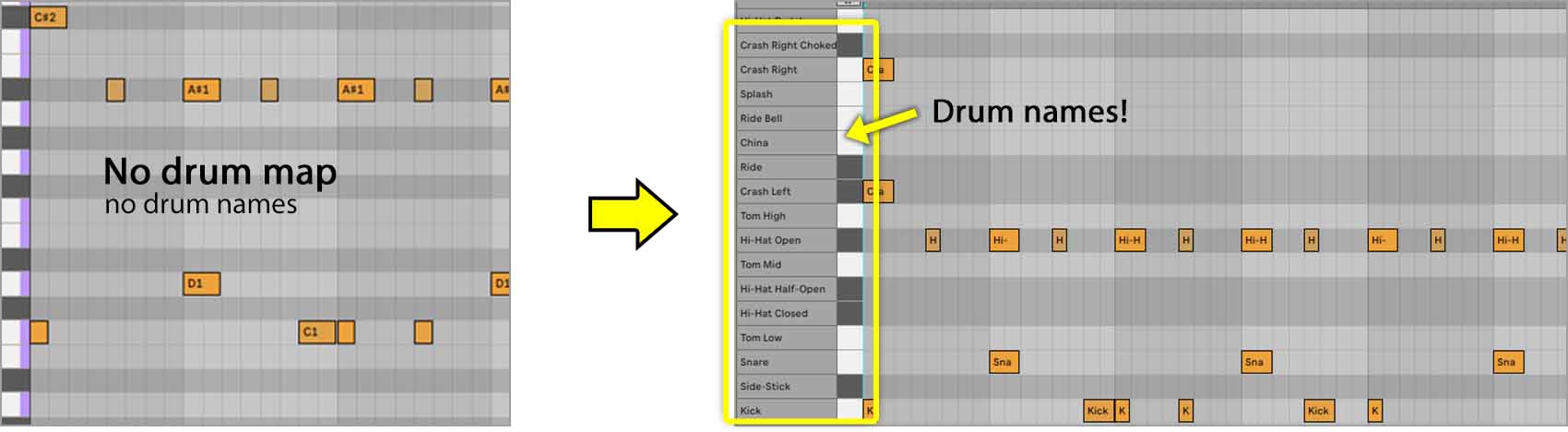 Ableton Live - Charger une Drum Map : afficher les noms de notes MIDI (nommer les hauteurs)