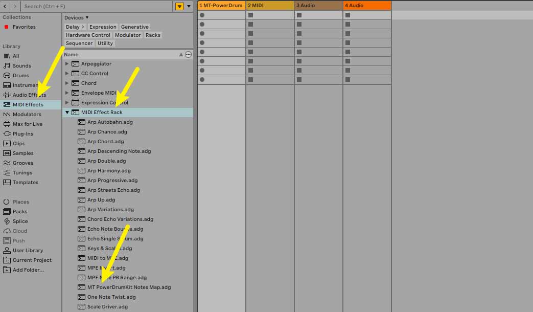 Double-cliquez deux fois sur le preset, afin qu'il y ait deux racks d'effets MIDI. Sinon, le logiciel de production musicale n'appliquera pas les noms des notes (probablement à cause d'un bug). Ensuite, vous pouvez en supprimer un.